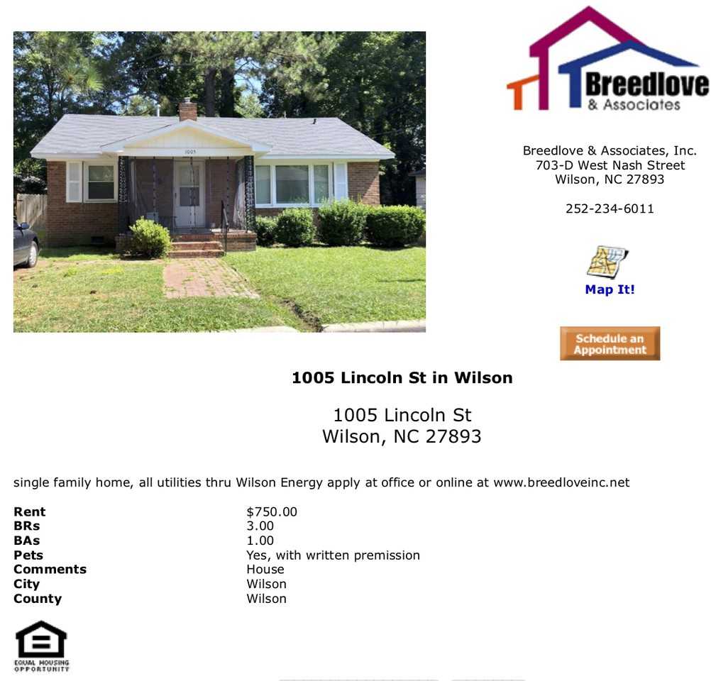 1005 Lincoln Street Southeast Wilson Nc 27893 3 Bedroom Apartment For Rent Padmapper